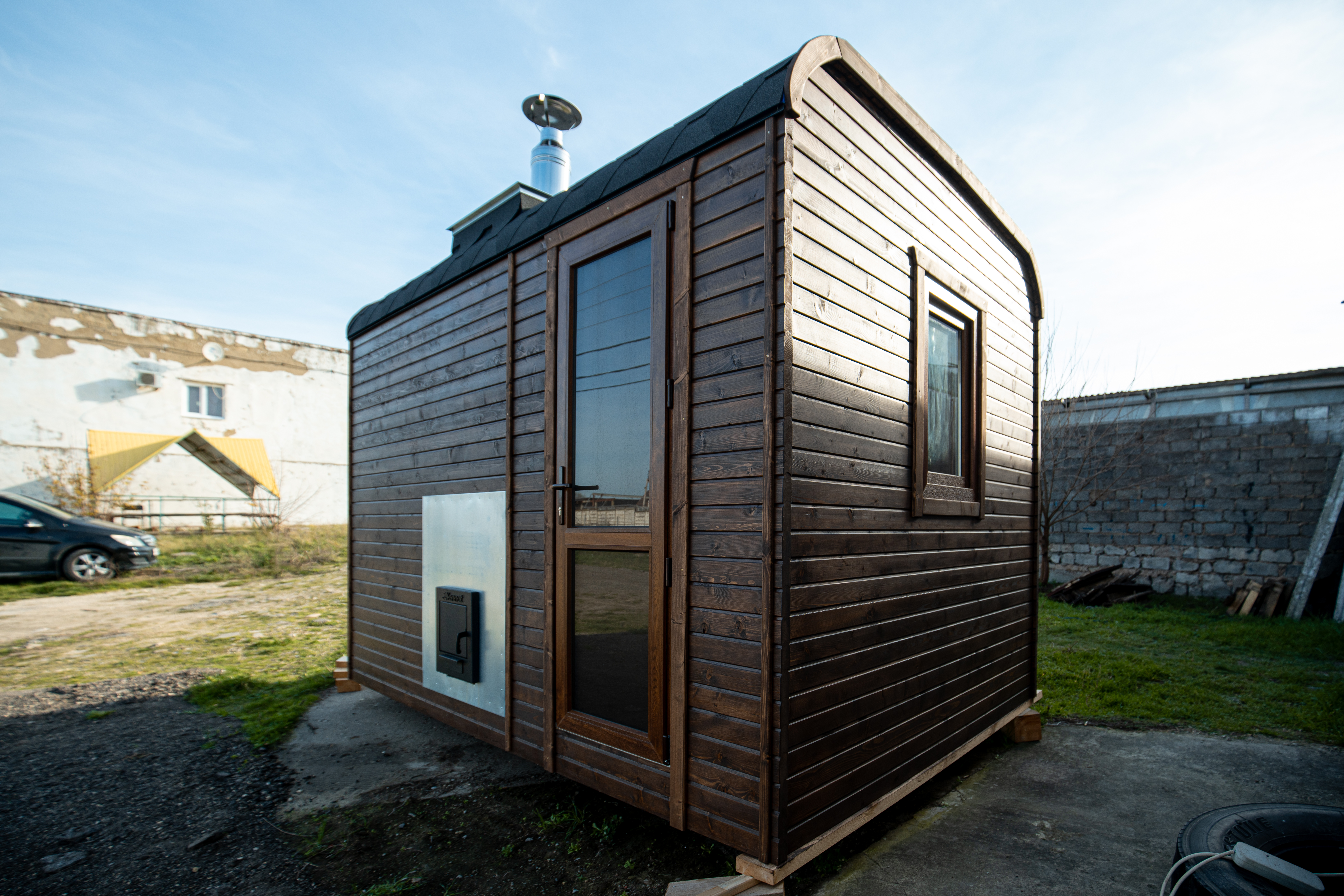 - Кровля арочная — стильная и элегантная крыша, которая придаёт бане уникальный вид и надёжную защиту от осадков.ы